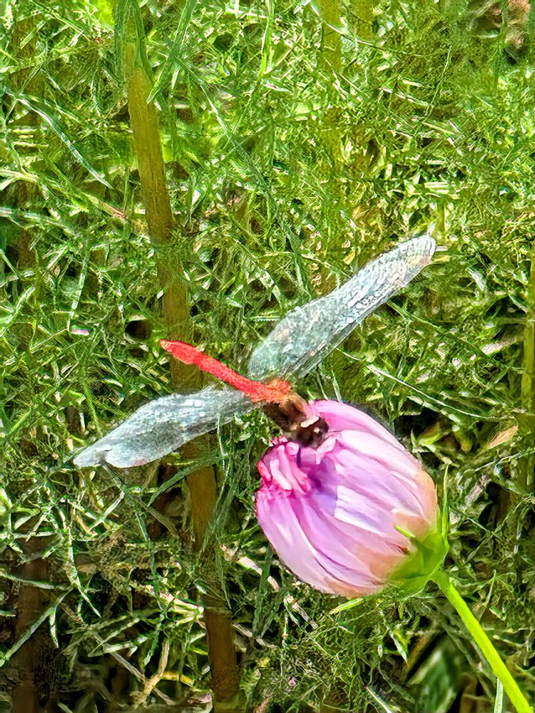 ツボミに停まった赤トンボさん