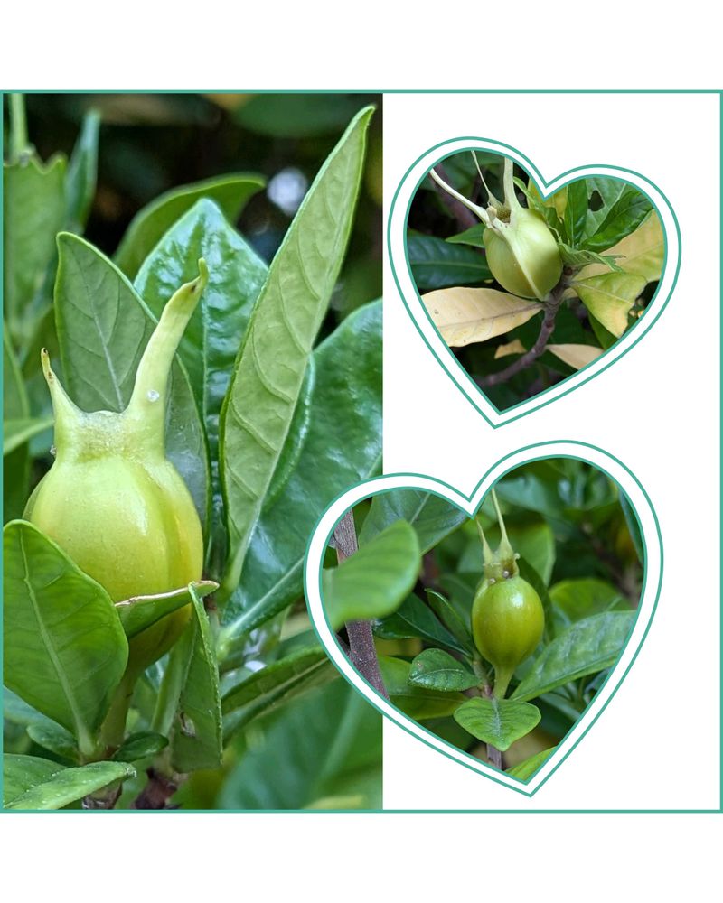 ①一重咲きのクチナシの青い実