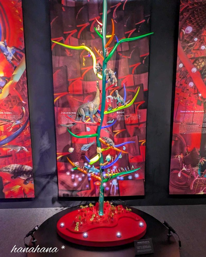 岡本太郎が1970年の大阪万博に打ち立てた太陽の塔。内部には生命の樹を擁していました。その後半世紀に渡り放置されていた塔内が、2018年再生されました。生命の樹は復元され、今回縮尺1/15のモデルが展示されています。