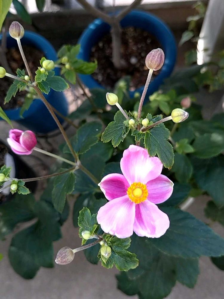 大好きな秋明菊がようやく咲きましたヽ(=´▽`=)ノ💕ピンク色で可愛いです😊💞最近また暑いので💦エアコン復活しました😅💦