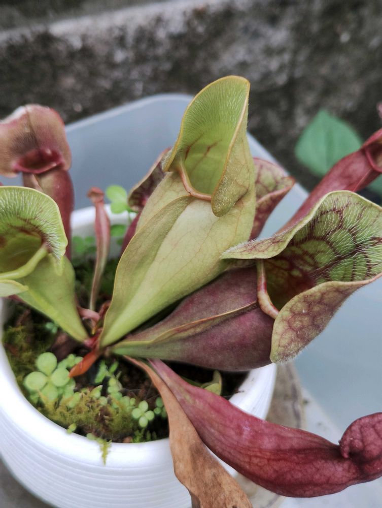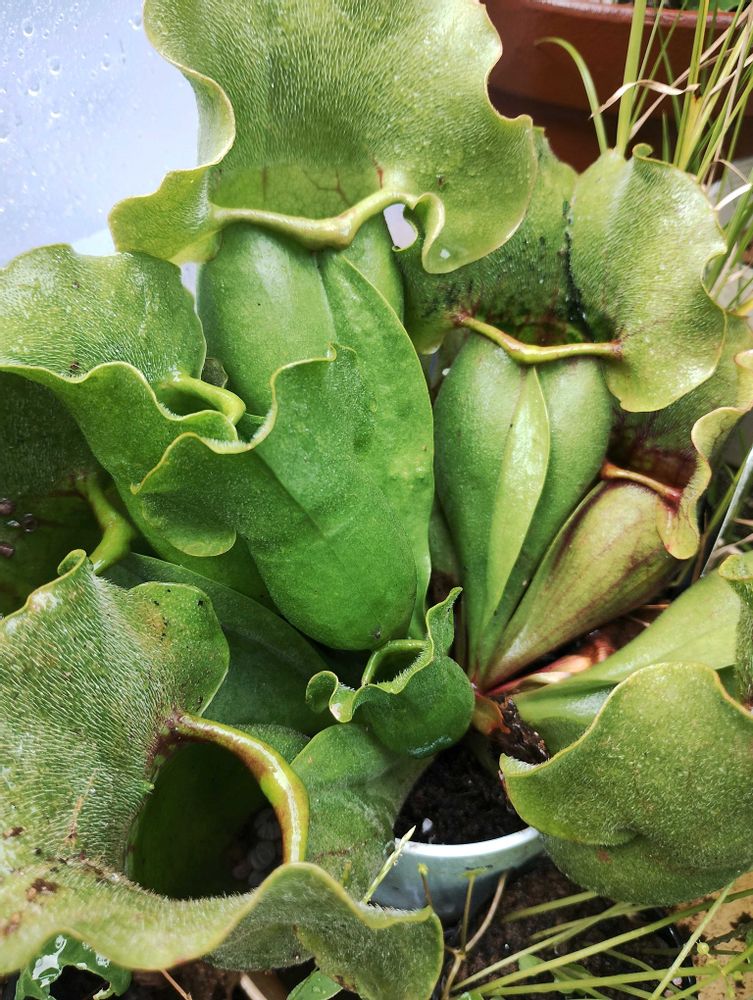 紫陽花の陰で育ったサラセニアは夏の間も中々元気にしてました。のでひと夏で大きく成長しました❣️そして亀甲竜2つ目が無事お目覚めしてくれました。ε-(´∀`;)ホッとひと安心😊