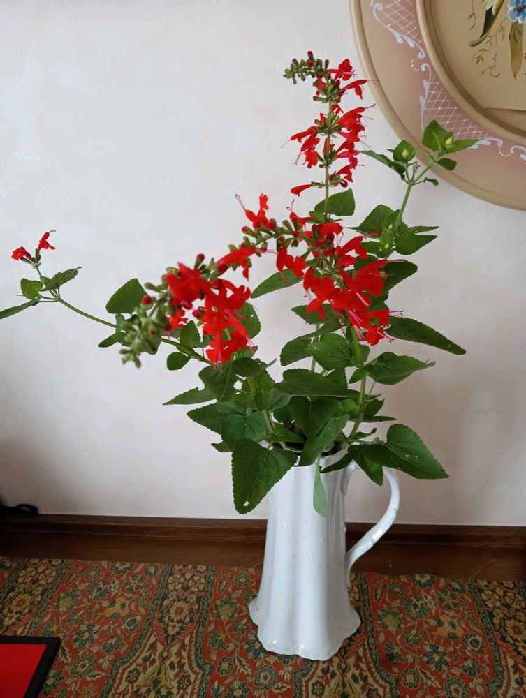 ベニバナサルビアは切り花には向いてないようで、うなだれてきました😓