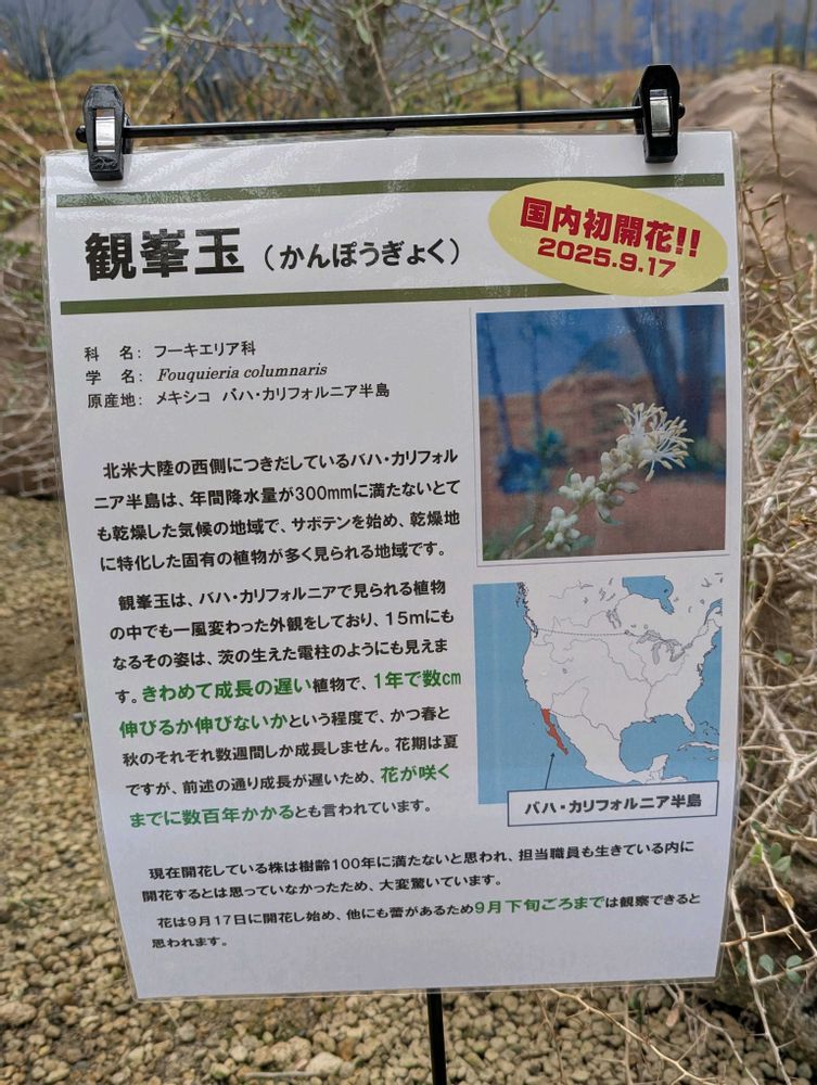 ①〜③成長が遅く、数百年に一度しか咲かないお花「観峯玉」が京都府立植物園で開花したということで見に行ってきました👀