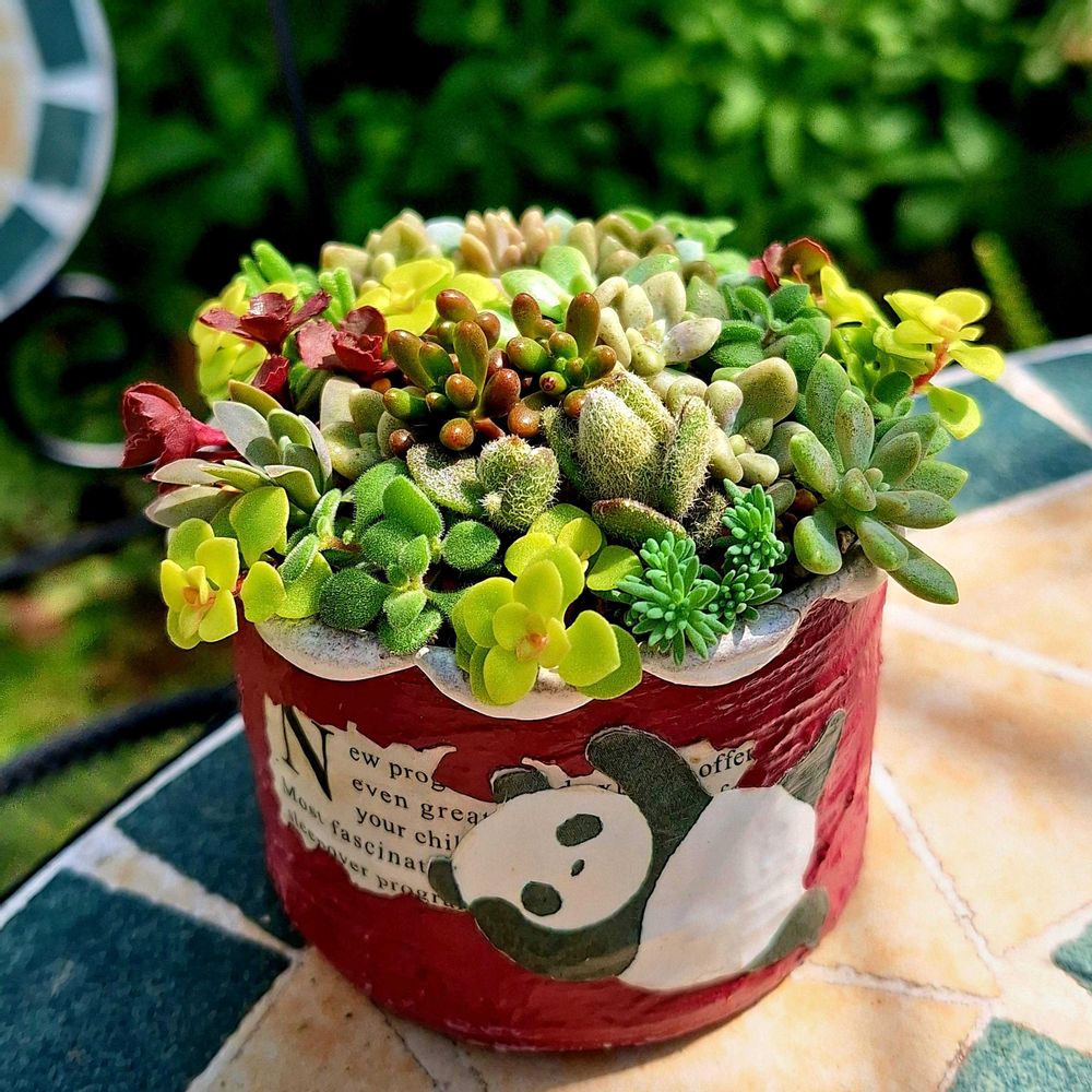 多肉植物の世界は楽しくて、私もみなさんの素敵な投稿を参考に、見よう見まねで寄せ植えをしています🎵😄