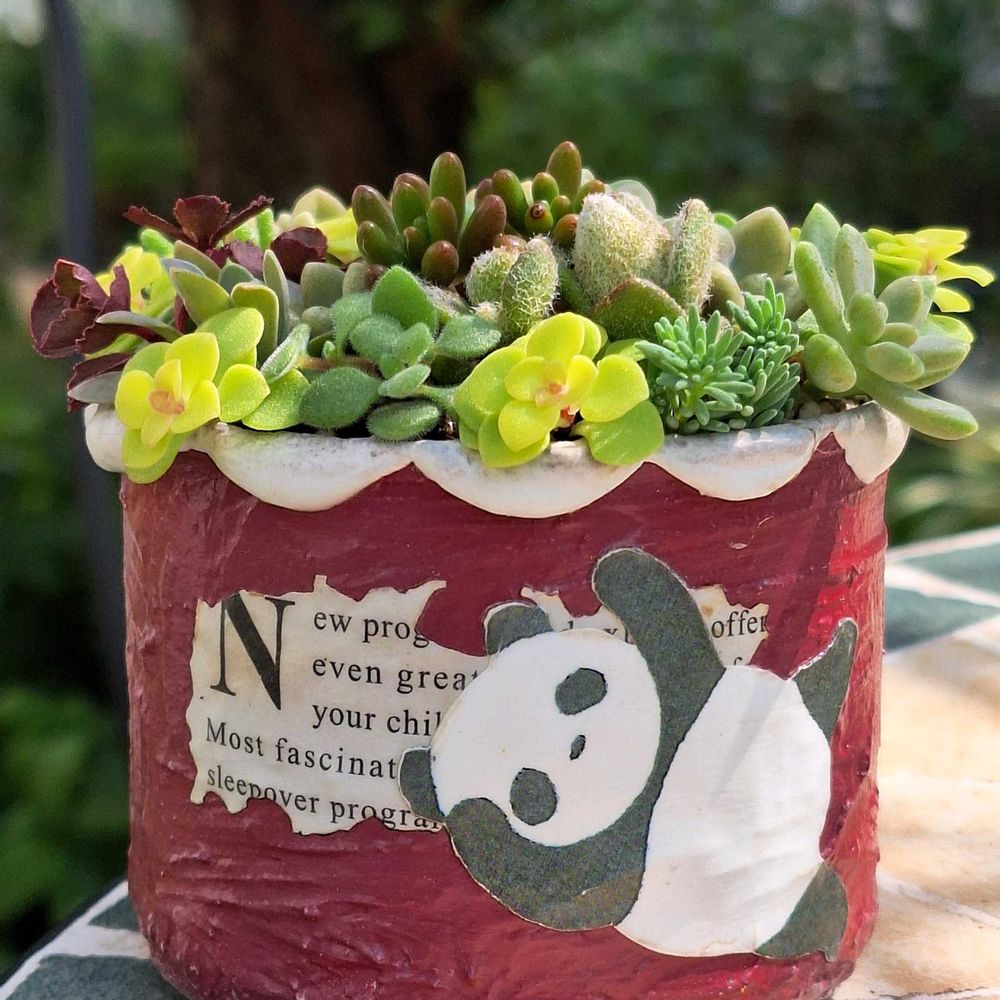リメ缶が可愛いので、寄せ植えも楽しくできました❕😄🎶