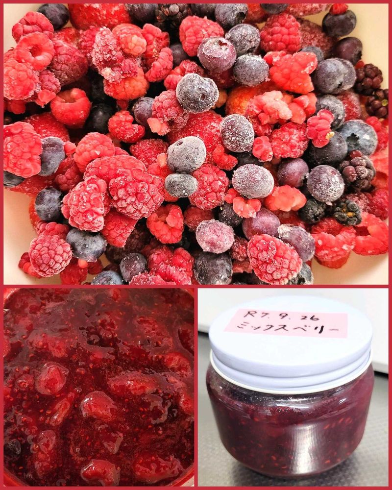 夏からコツコツ採り貯めてきたブルーベリー、ラズベリー、イチゴでミックスベリージャムを作りました🍓🟣