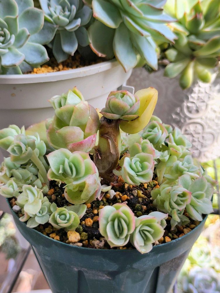 カットして半年 子👶も葉挿しもたくさん出ました 可愛い🥰頭のほうはなかなか大きくならず…カットしてリセット😑