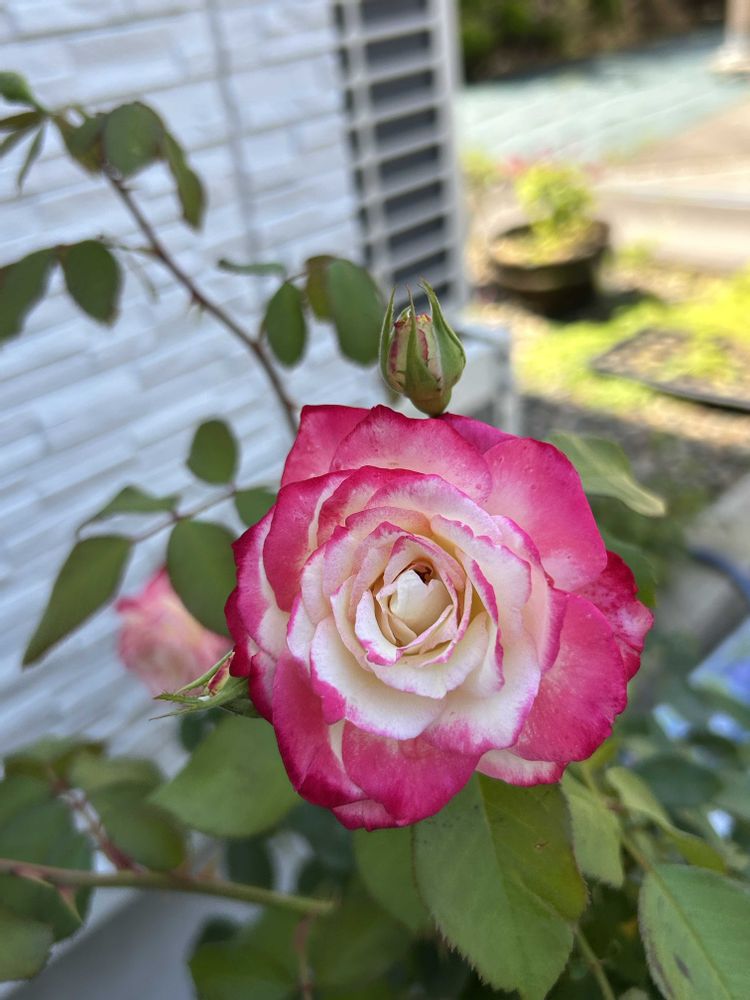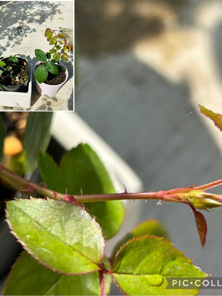 ③去年裏のお宅のバラの剪定手伝ったときに1本枝を貰ってきて、挿し木したら根っこ生えて蕾もつきました🥰猛暑でも枯れずに育ってくれたので絶対枯らさないようにしたいです🥰