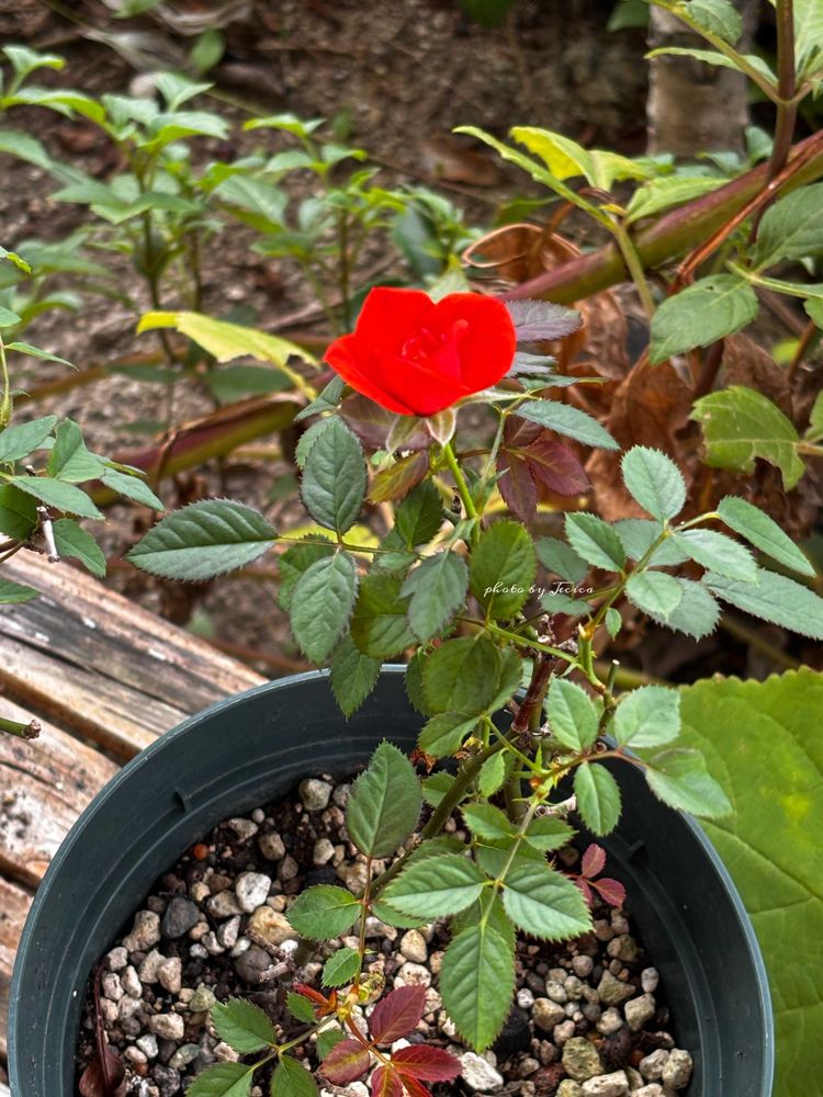 庭,刺繍のお花,赤いミニ薔薇の花の投稿画像