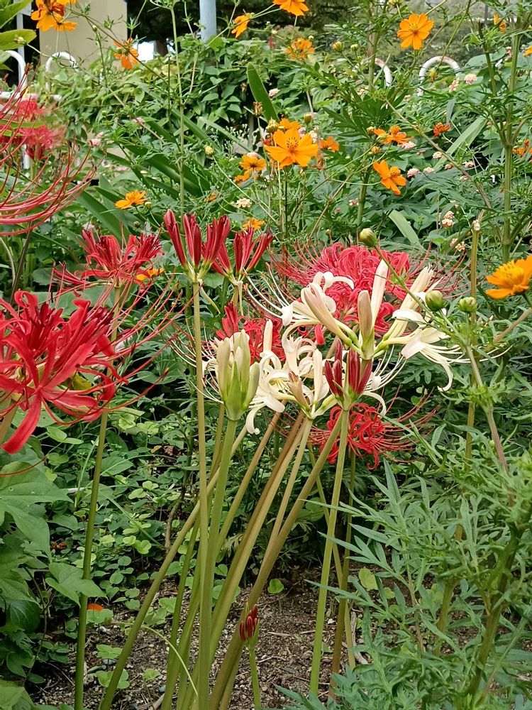 ①②コスモスと、彼岸花赤、白綺麗に咲いていました✨️🤍❤️