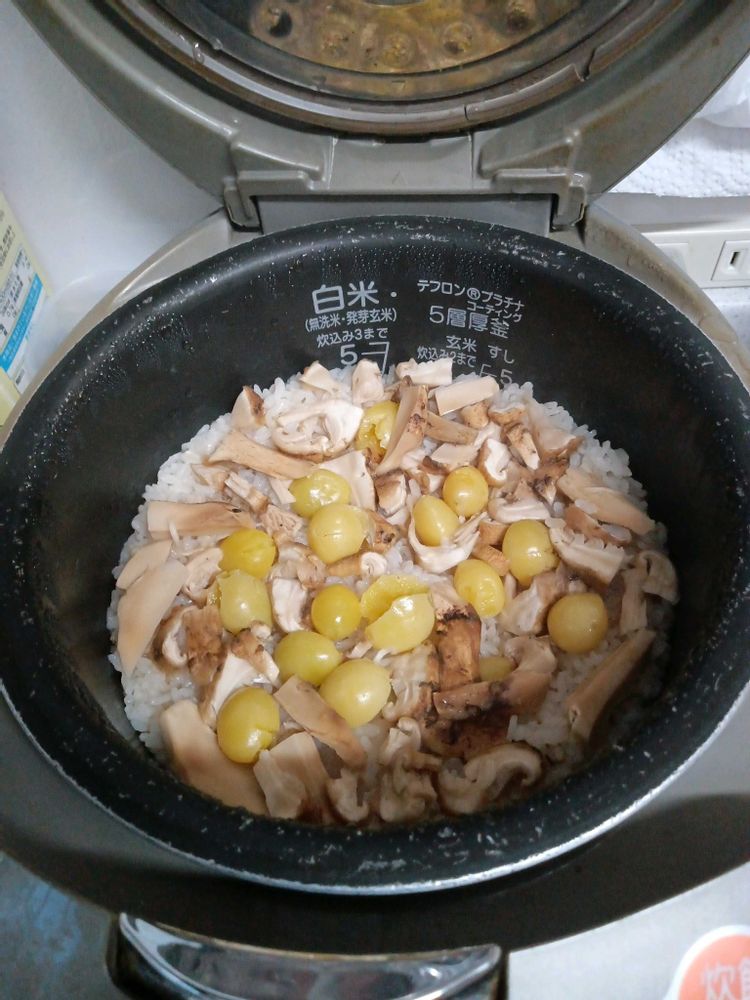 ④松茸ご飯、銀杏も入れて…秋を頂きます✨️🍂🍁😋