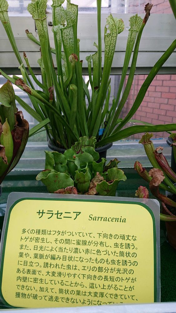 虫捕りスミレ、蝿取り草、サラセニア(今日はついてなかった花も独特) 草で有りながらも動く ('ω'三'ω')