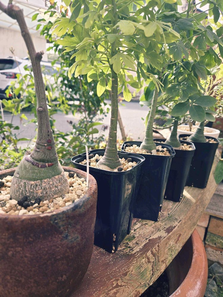 淡路島産種子からの実生4株と、オークション実生株(手前)