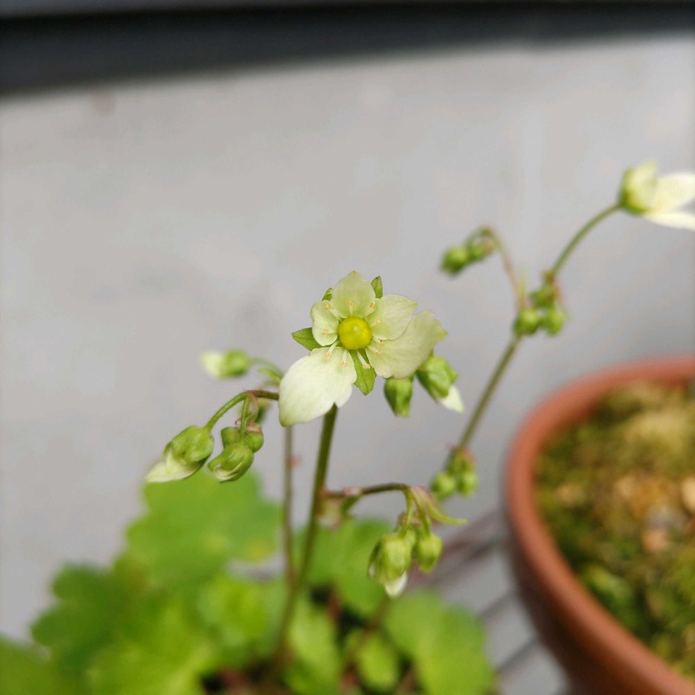 〈地味投稿〉この季節になりました✨我が家の定番、ダイモンジソウ・大文字草(園芸へ第👣歩)1️⃣開花1号「緑仙」です2️⃣同鉢 花を少しアップしました3️⃣家の記念樹「ハナミズキ」赤い実(初)なりました4️⃣来年開花予定の花の芽も、世代交代進んでます、今日は少し秋の気配を感じてます🤗長袖だそうかな。