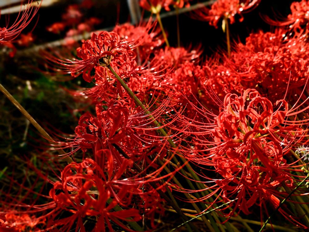 田畑の周りで鮮やかに咲くヒガンバナ。