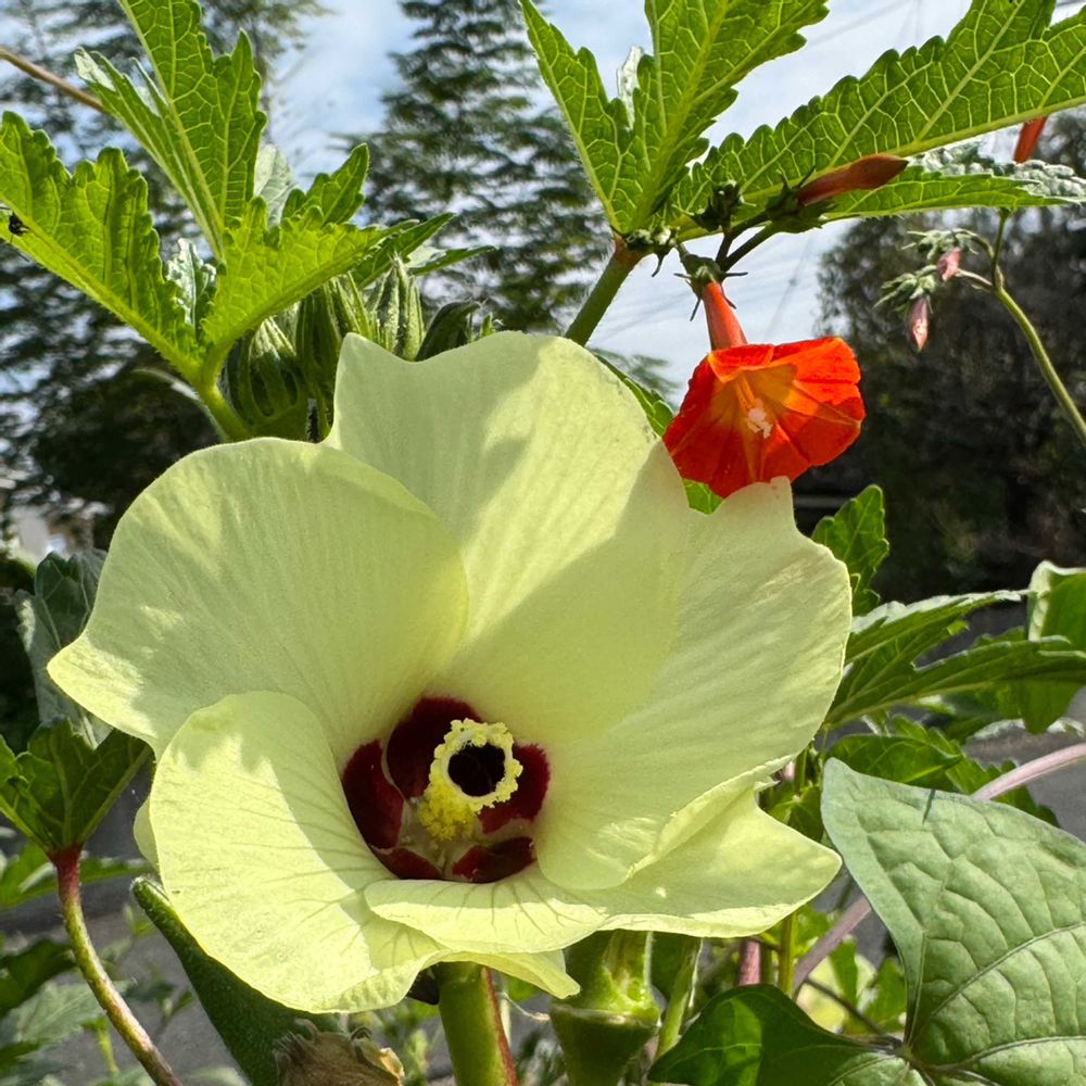 オクラの花🌼と丸葉ルコウソウ🌺
