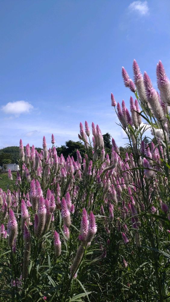 爽やかな秋の空に、元気良く伸びるケイトウの華やぎ素敵です~🎵