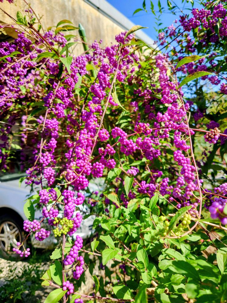 今日の午前、市内を散歩途中に見かけたムラサキシキブ。