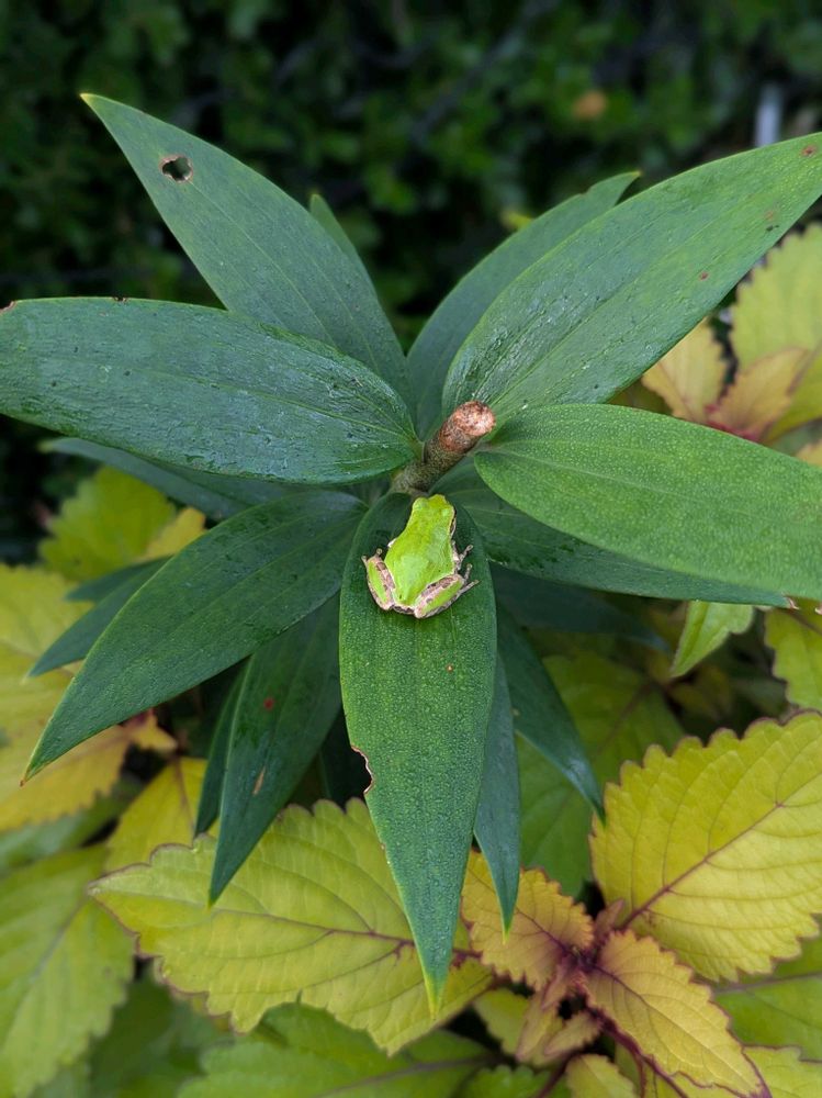 3枚目には…後ろのユリの葉っぱにちょこんと座っているアマガエル🐸の姿も💚