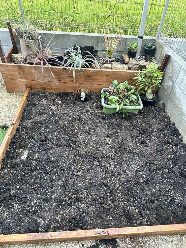 手前に触ってもいい植物置いて奥のアガベ触らせない作戦でいきます😎