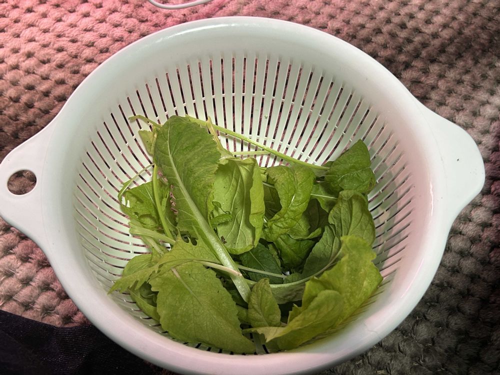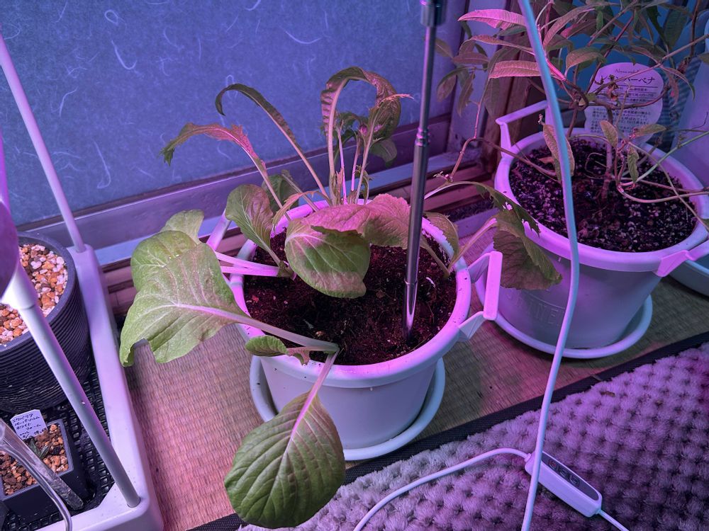 そして暑さが収まる気配を感じていなかった9月上旬、6号鉢に播種&ライトを設置して室内管理栽培をしていた和風ベビーリーフミックスがありまして、