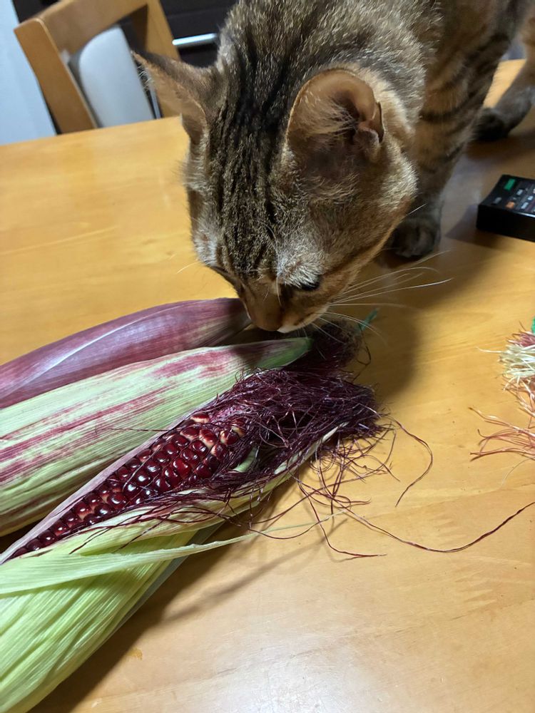 秋トウモロコシ🌽の収穫おめでとうございます㊗️紫色のトウモロコシなんですね!