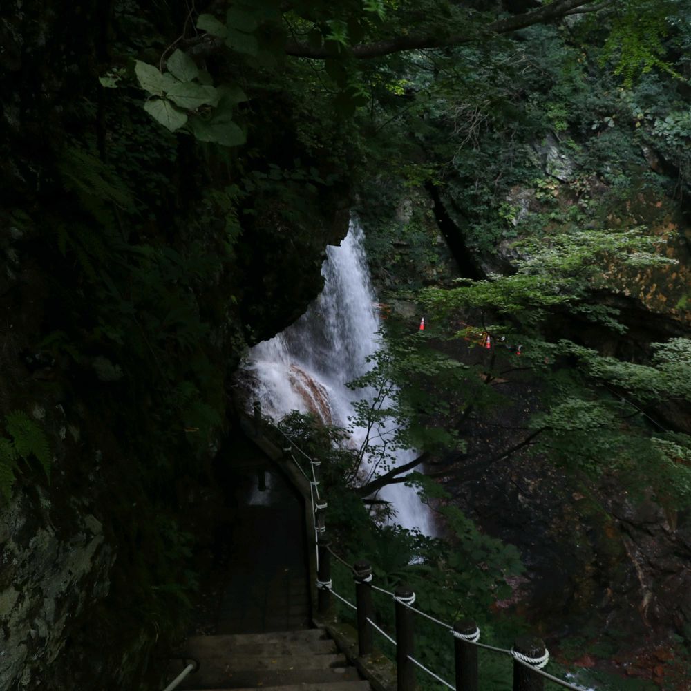 4台ほどの🅿️に車を停めて遊歩道を下ると、なんと滝の裏側を見ることが出来ます😯 滝の裏側だけに目の前で見る滝は圧巻。その名に相応しい轟音と迫力。ちょっとその場に居るのが怖くなるくらいでした🥲😅