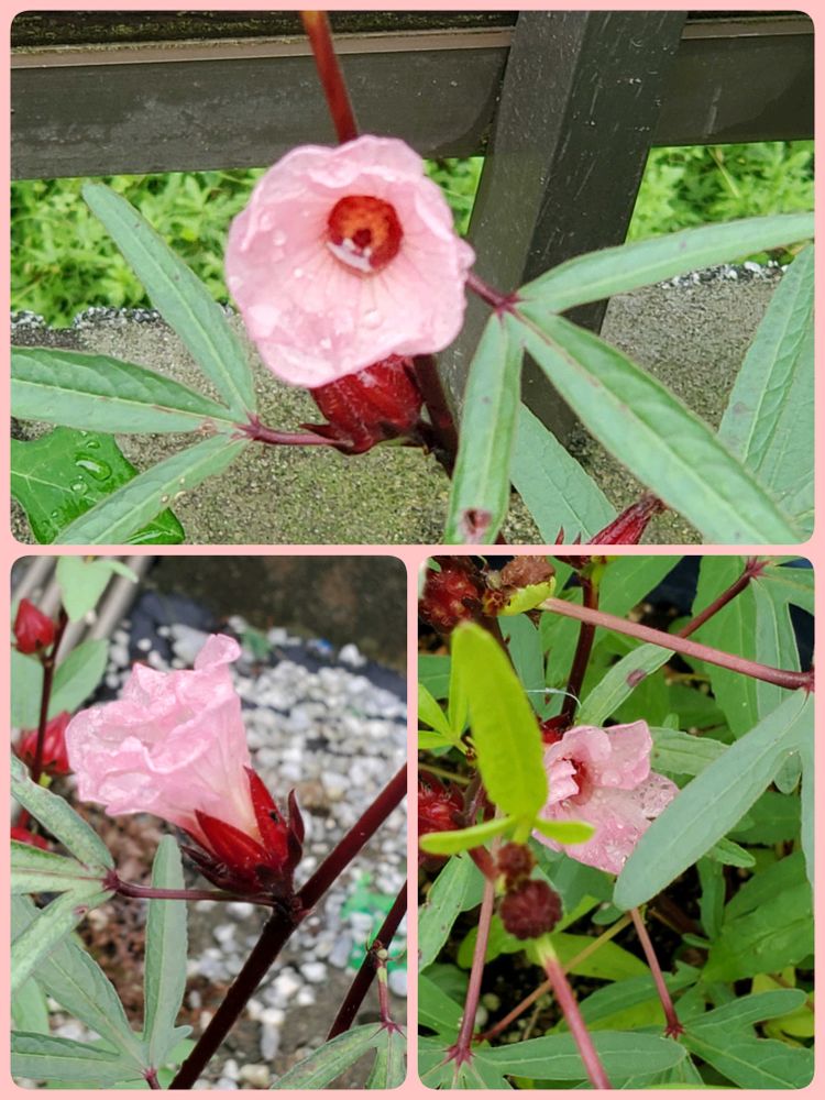 ローゼルは今日はピンクだけ咲いてました~😍