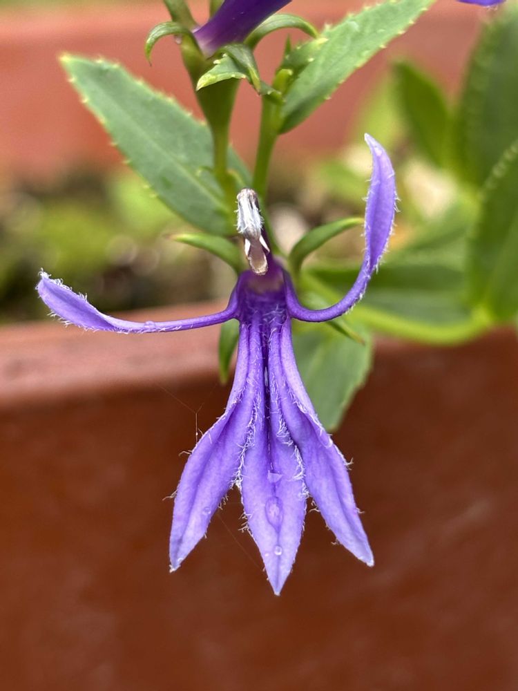 我が家では6・7月に咲いていた沢桔梗(サワギキョウ)ですが、灼熱地獄の中、細い茎が出てきて倒れながら、10日ほど前に何とか花を咲かせました。6月に咲いたものは枯れています。よく咲いてくれました😄