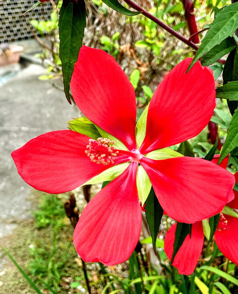 モミジアオイ,通り道のお宅のアプローチに,昨日の朝の散歩道での投稿画像
