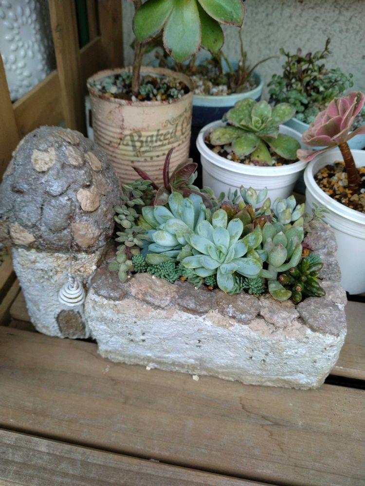 やっと仕立て直しできたモルタル鉢の寄植え🍀