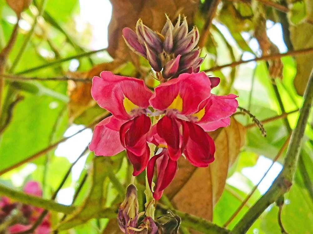 以前、都内の花園で👀📷たくさんの🌿に覆われた🌳に深味のある赤い花が鮮やかに咲いてました❤️✨️