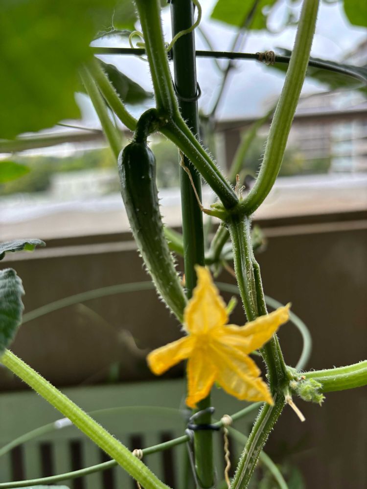 ④秋になって2本目のきゅうり、もう1本も下に出来ています