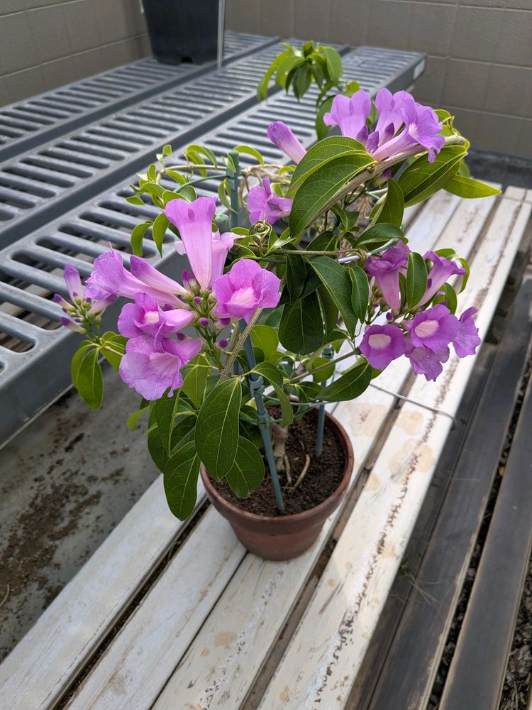今朝はニンニクカズラが咲き始めており名前の通り花や葉から微かなニンニク臭が漂って来ます。そして青紫色の美しい花が今頃は沖縄のどこかでも咲いているのでしょうね?ちなみに沖縄では壁面緑化、パーゴラ、アーチ仕立てに使用されるそうです。花言葉は家庭の幸せ、個性的、ありのままの私を見て!