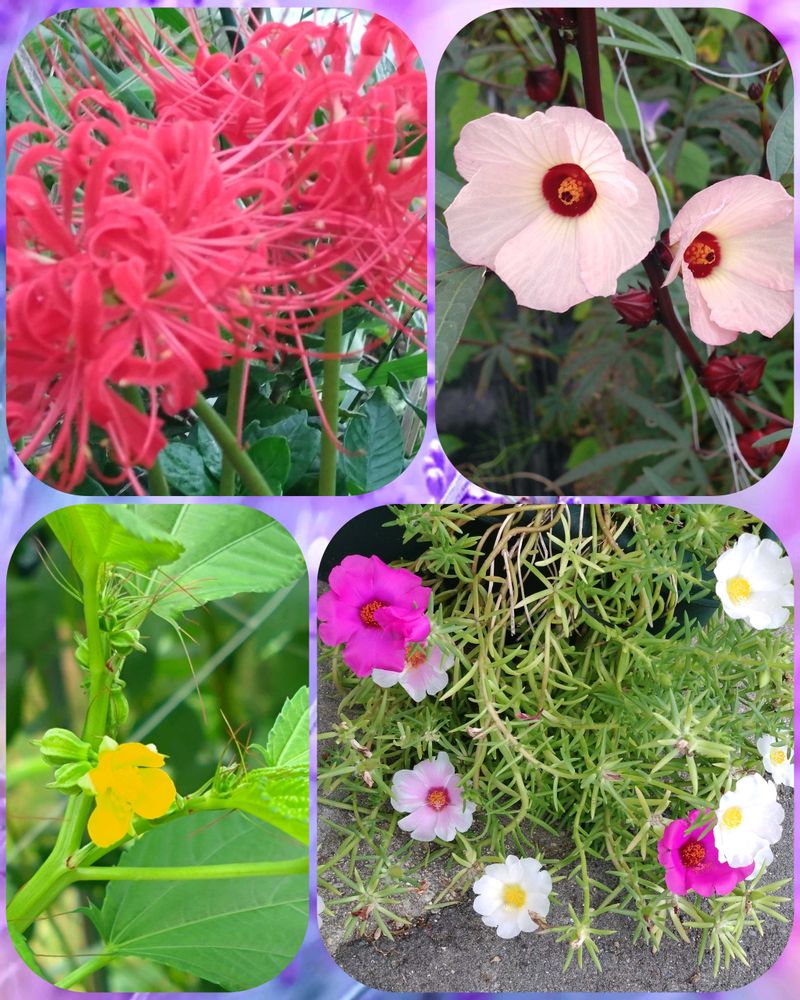 ローゼルやその横で咲いてるモロヘイヤ、玄関の松葉牡丹も涼しくなったせいか、みんな元気いっぱいです🥰