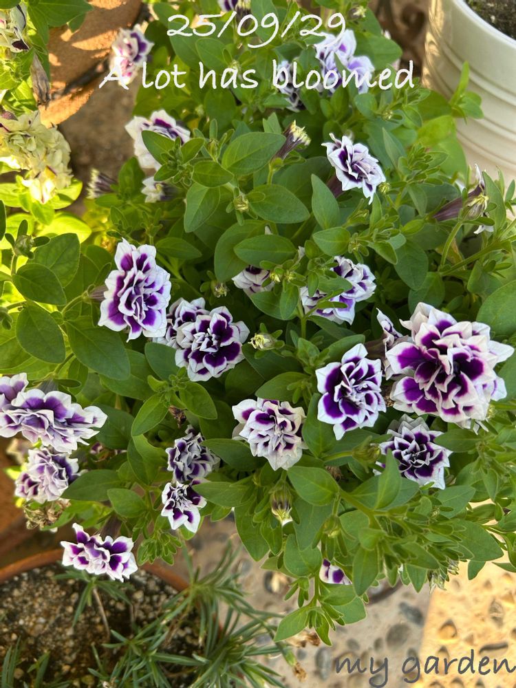切り戻してモリモリになってきたペチュニア花衣藍染