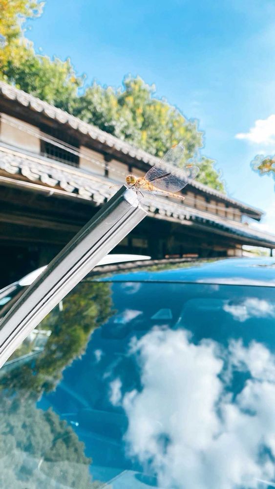 今年は柿が豊作らしい😊美味しかったよ🥰👌洗車中にトンボが😅茄子🍆はまだまだ取れそうです〜😋