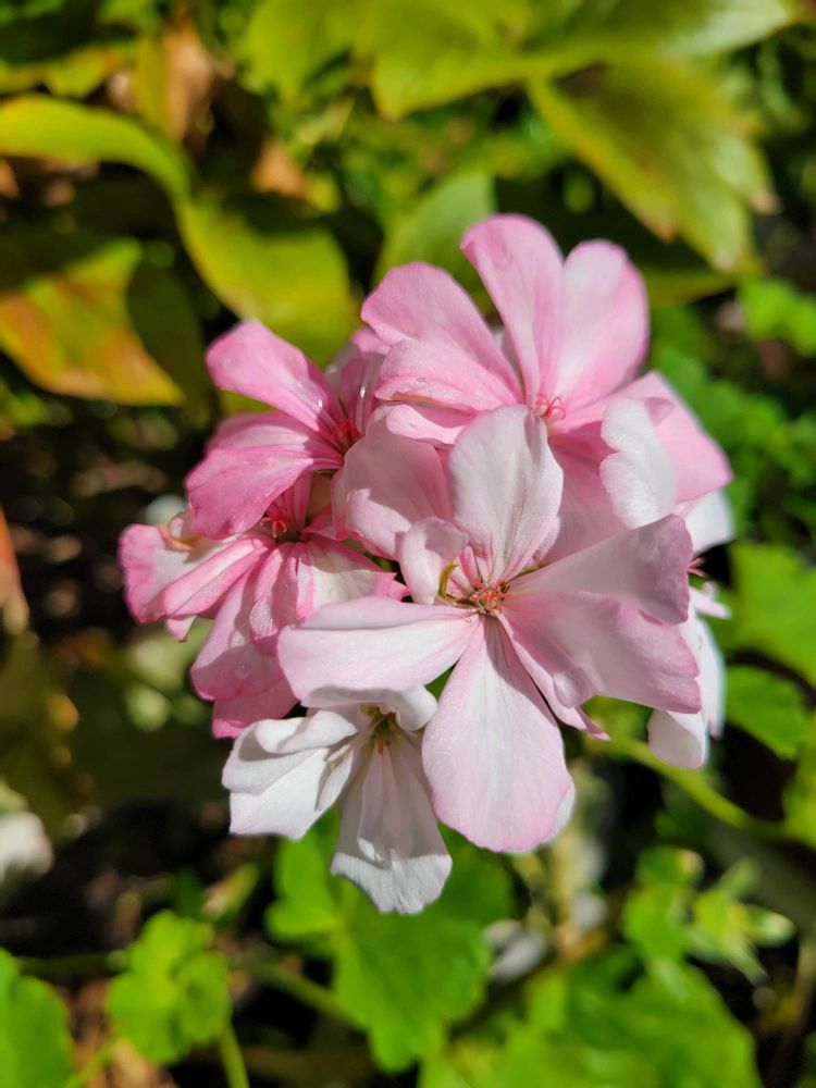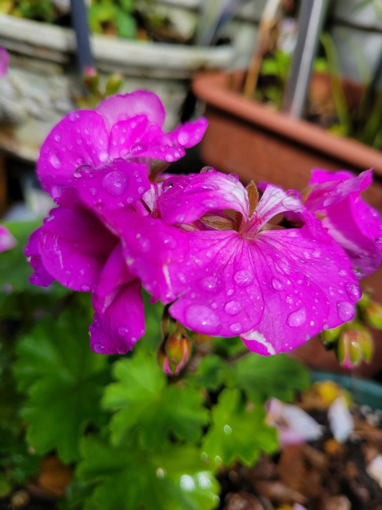 4、5枚目 ゼラニューム 我が家に長くいる子ですが、株分けしてあげたり、お世話を欠かせてしまって少し痩せてしまいましたが、可愛く咲いてくれて良かった💓今日の姿と晴れた昨日の姿どちらも可愛い~🎶