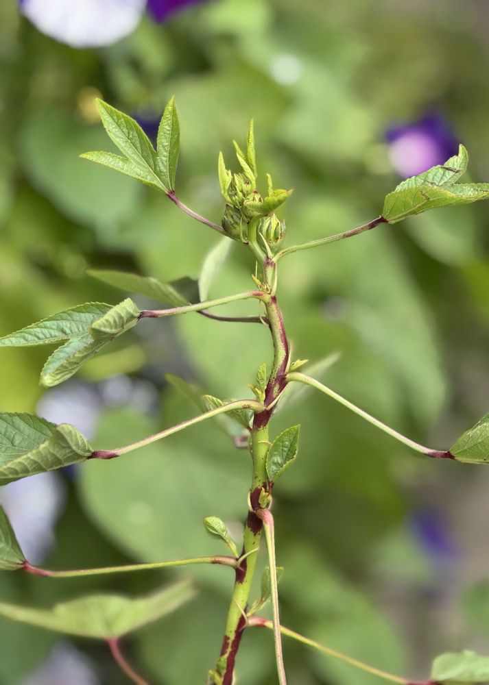 皆さんのpicみて前から赤い実が気になっていました 見切り品にローゼル見つけて購入 冬は越せないらしいとか色々迷ったけどとにかく赤い実が見たいとの欲求に負けました😅