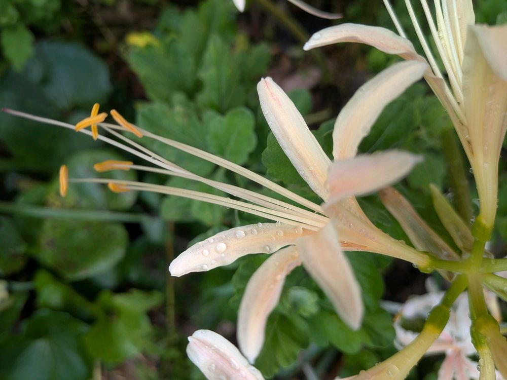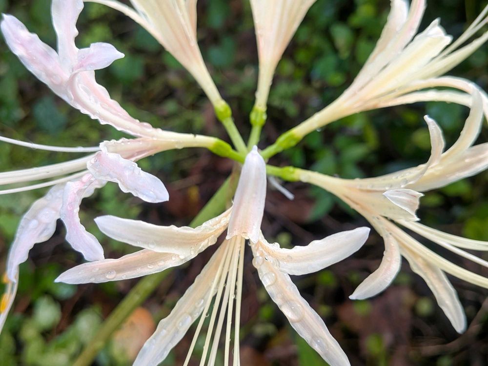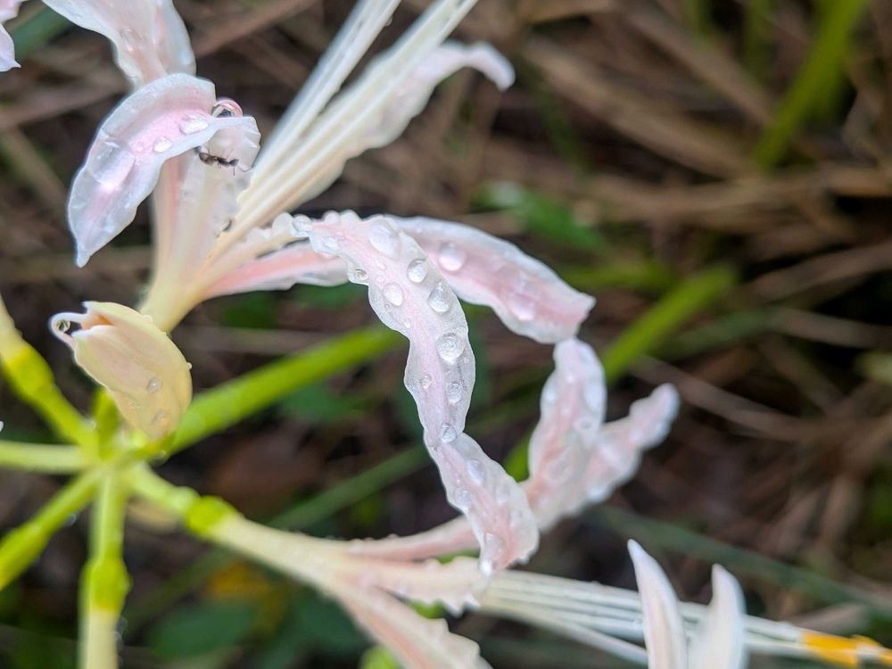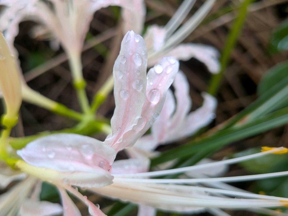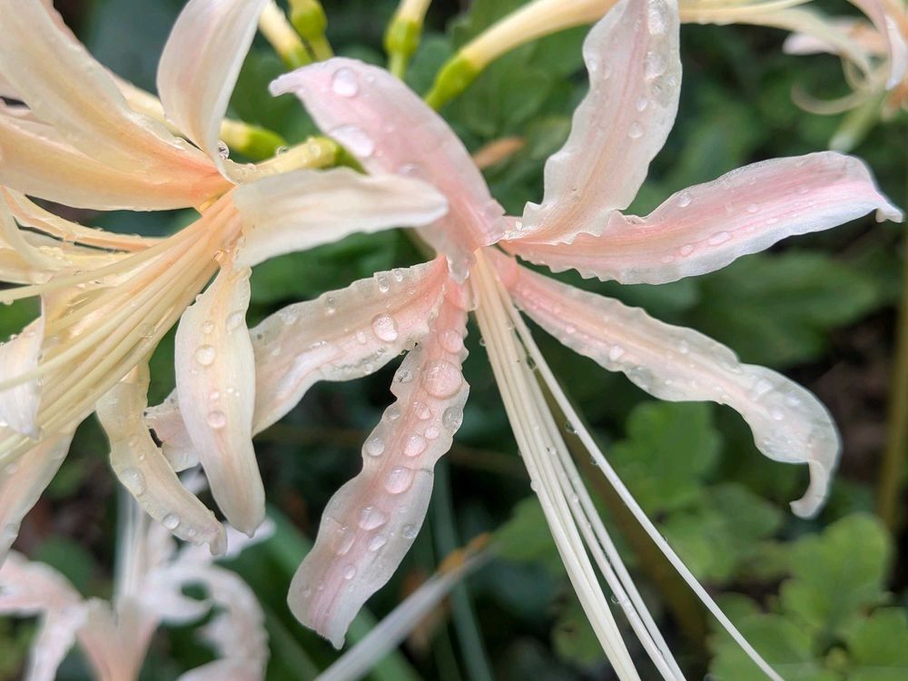 リコリスに昨夜の雨雫💧🔵💧🔵💧🔵