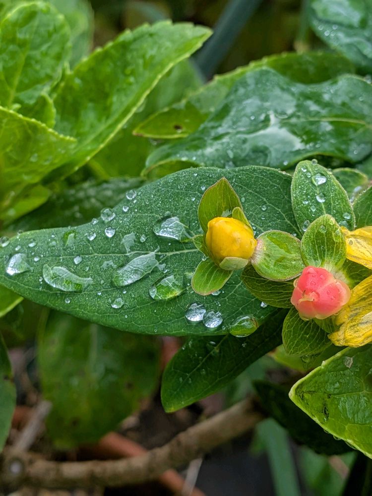 ヒペリカムに沢山の雨雫💧🔵💧🔵💧🔵💧