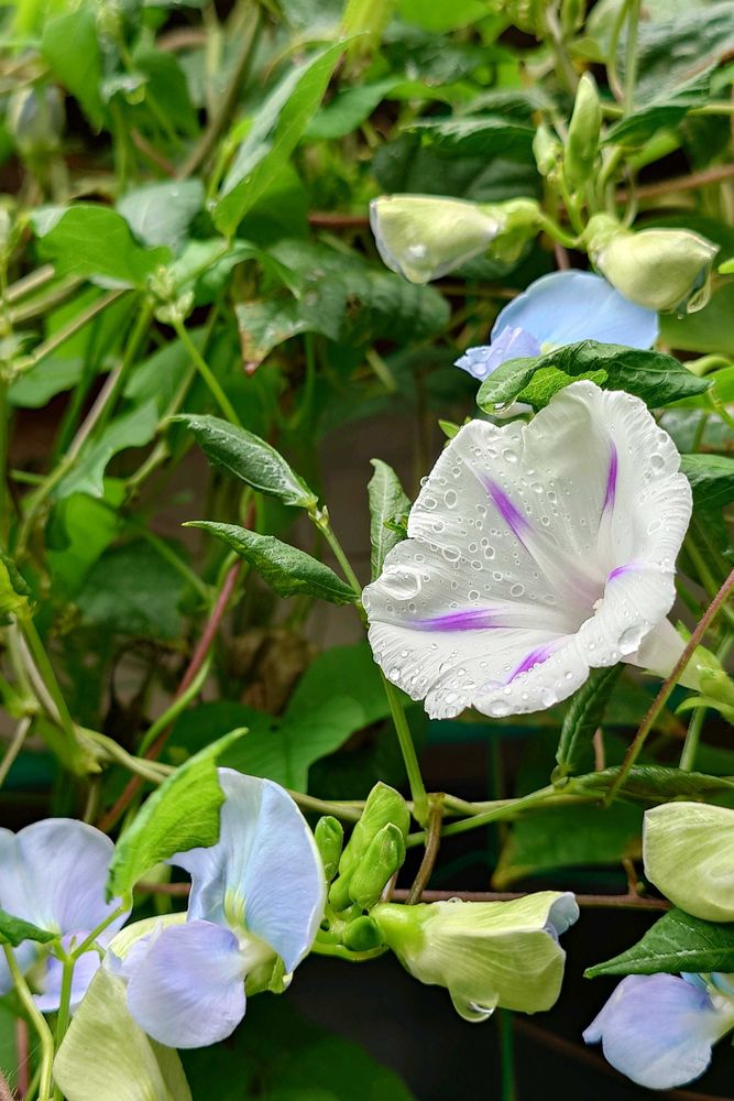 アサガオと四角豆がいい感じにからまってステキ💕💕💕