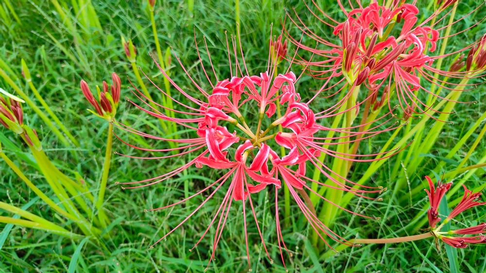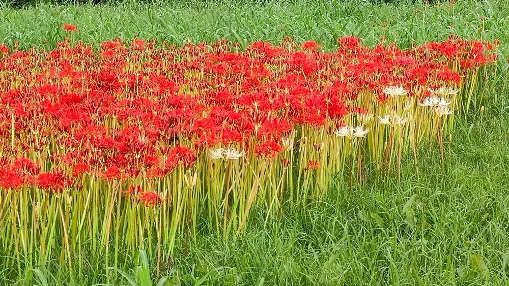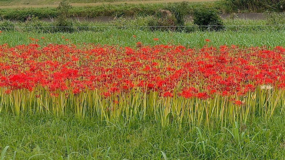 遠賀川直方付近の川辺の曼珠沙華