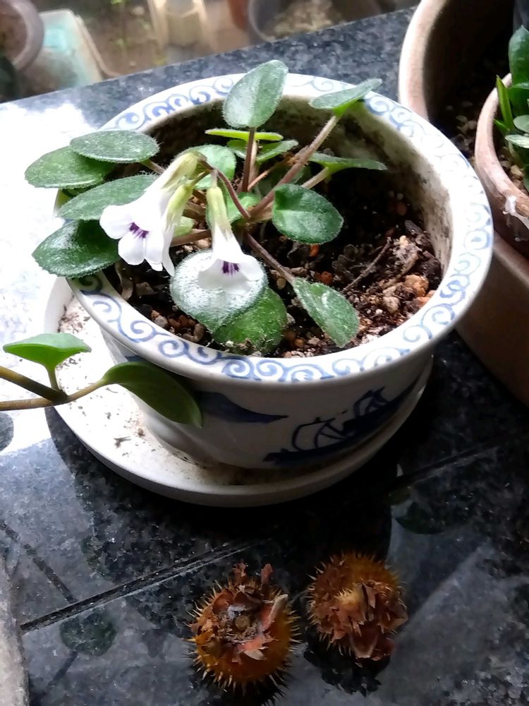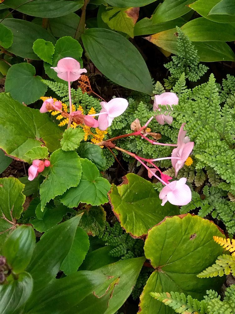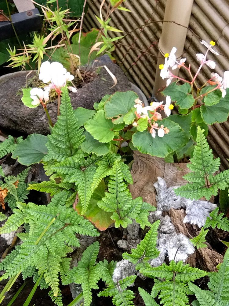 トキワシノブに居候シュウカイドウ元気に咲きました🎶