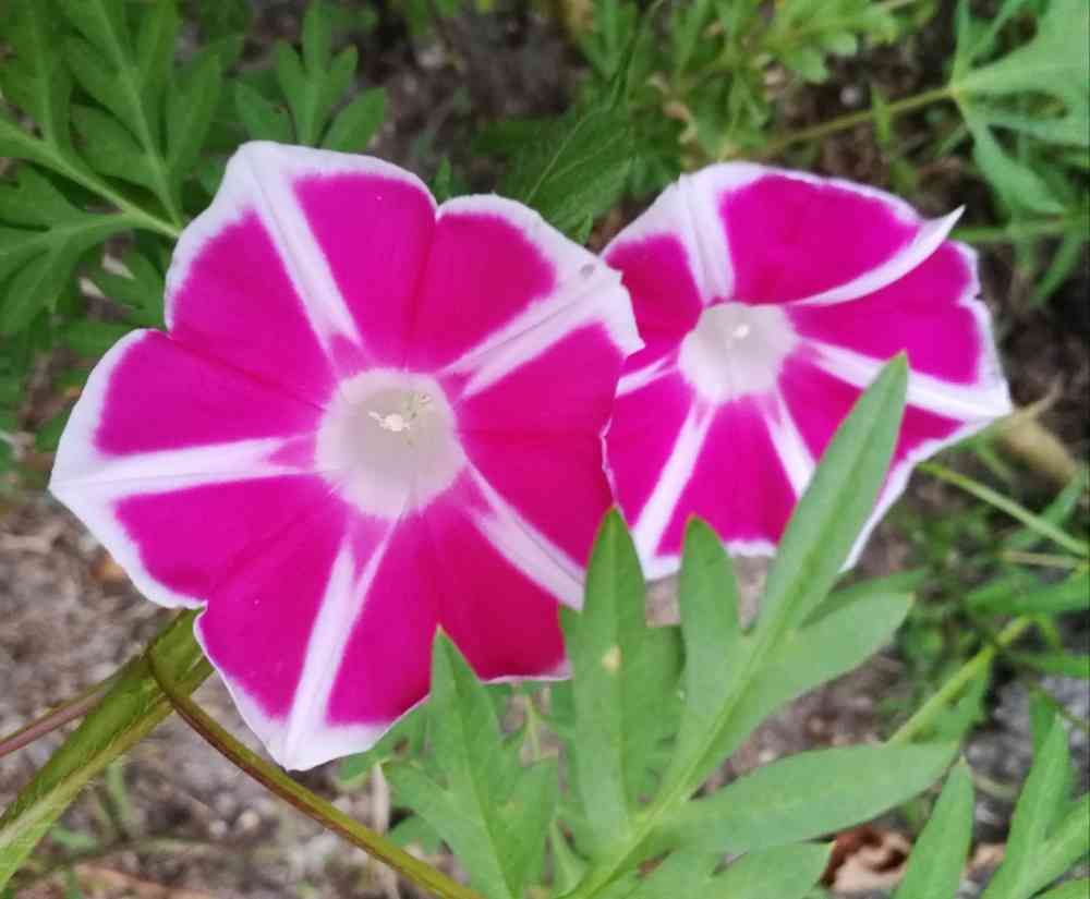 こぼれ種アサガオ。ビビッドなの咲きました🤩