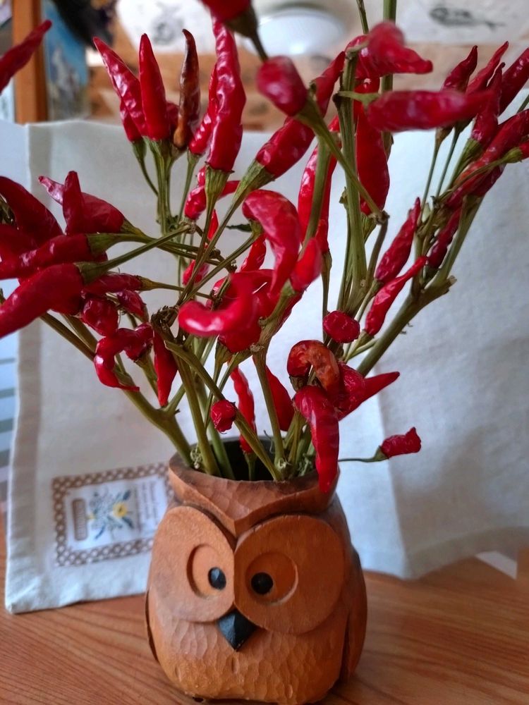 フクロウさん 唐辛子のせいか 赤らんでる、、、ポカポカするのかなぁー笑笑🤣