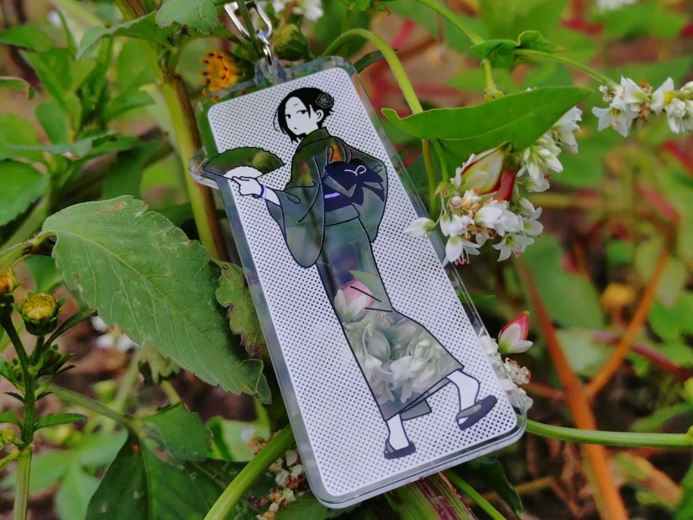 …と、 れんかちゃん(お散歩ちゃんキーホルダー)をモデル②に、ひさびさに撮ってみたよ~ たまたま横たわった茎があったので、なんとか着物に柄を纏えたー💦
