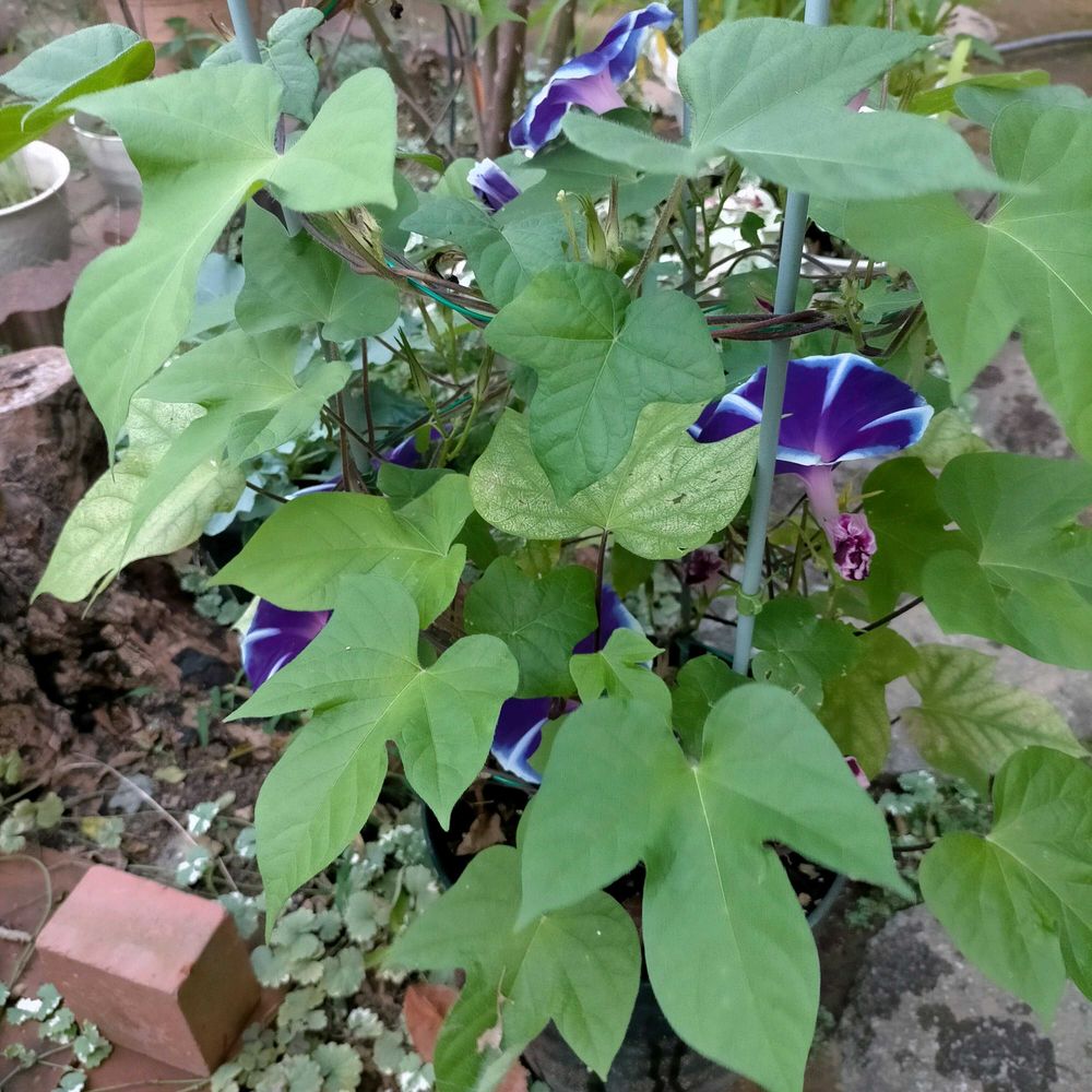 同じ鉢に植わっていた西洋朝顔スノーフレークの自家採種は、ちょびっと咲いたきり音沙汰なしです。葉やツルの成長も鈍かったので、F1からの採種で2代目だからかなと推測しています🧐