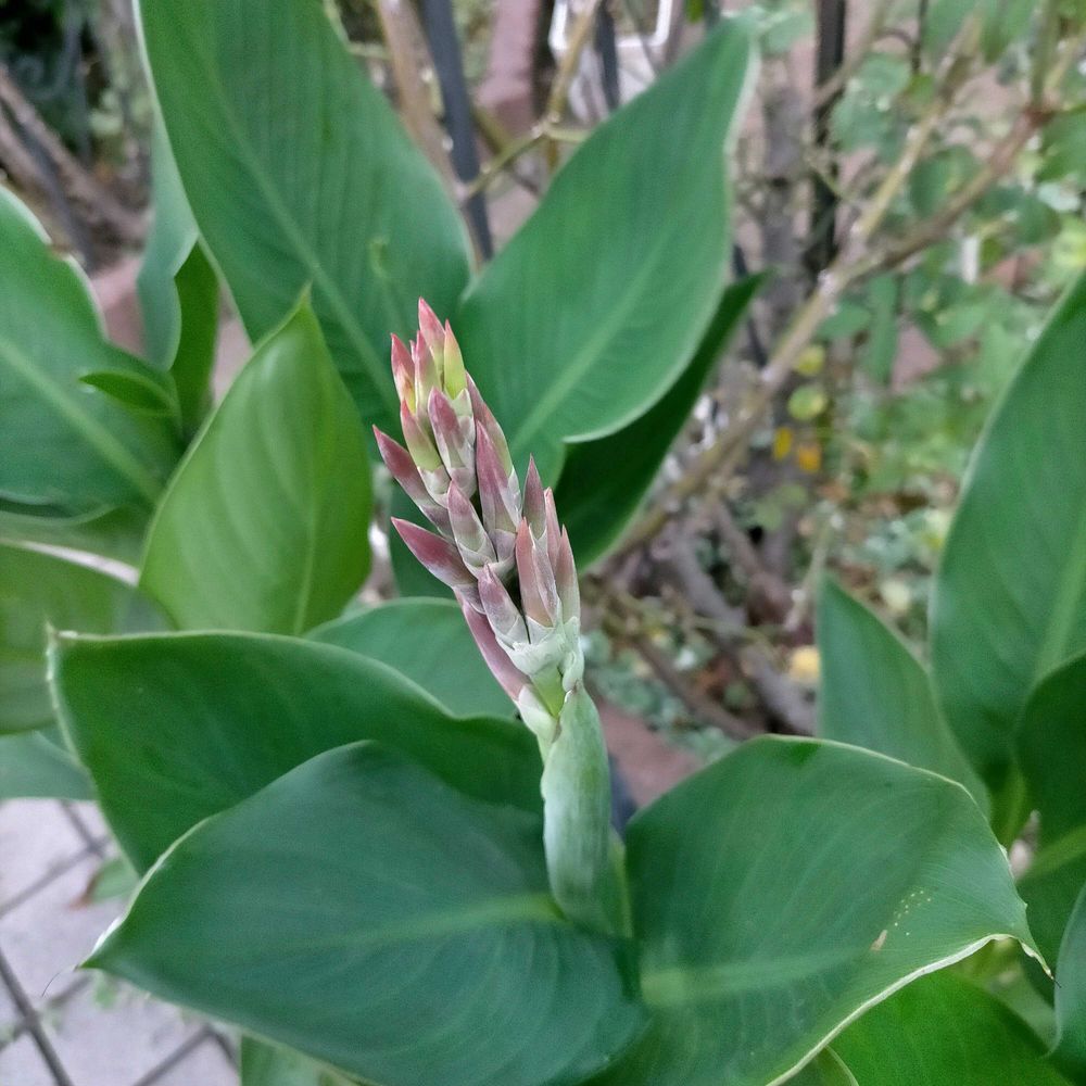 【5枚目】朝顔と同じく7月7日に種まきした矮性カンナは、とうとう蕾がふくらんできました!😆 種まきから85日目/2ヶ月と23日目。