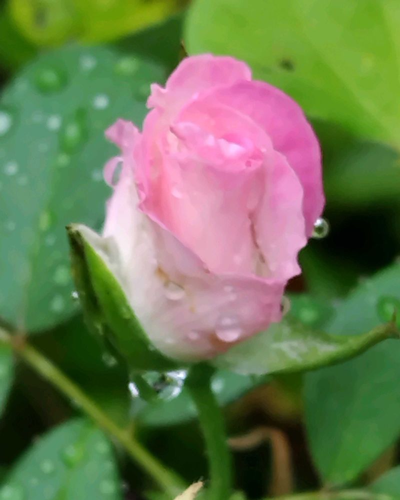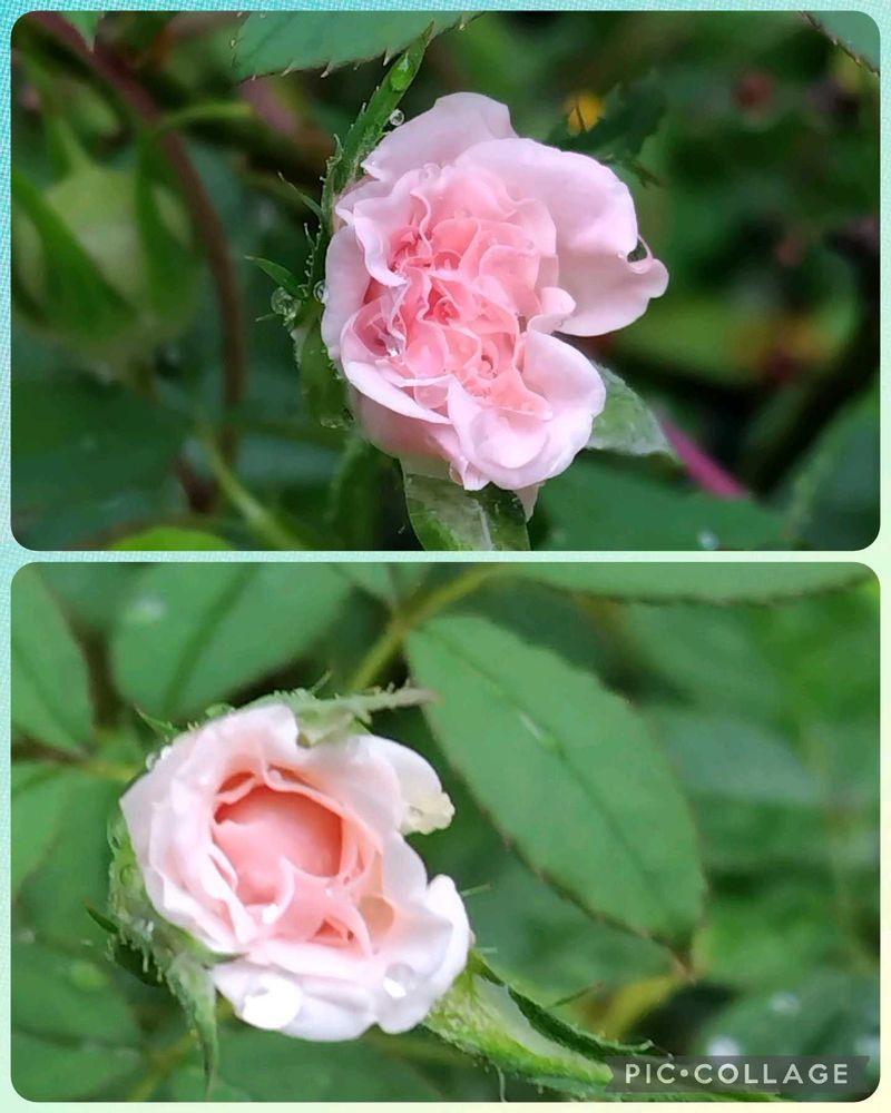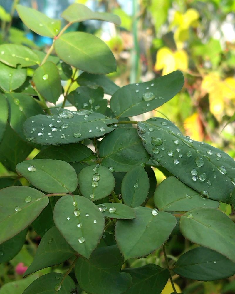 ⑤コロンコロンの雨粒をいっぱい乗せたバラの葉っぱ🫧🌿🫧